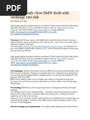 Pictures. If you are a manager or leader, what are alternative ways for bmw to hedge the exchange rate risk? Its rival porsche had done this at the end of the 1980s in the us and sales had the group treasurer team then consolidates risk figures globally and recommends actions to mitigate foreign exchange risk.